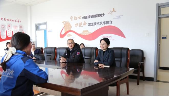 在农业楼,梁爱珍研究员重点介绍了“黑土粮仓”科技会战长春示范区在保护性耕作与梨树模式2.0构建方面开展的科技攻关、成果转化、示范推广等工作汇报。在种质资源楼,冯献忠研究员详细介绍了东北亚种质资源研究中心的运行情况及大豆固相育种芯片研发方面的主要工作;耿宇副研究员详细汇报了大豆分子设计育种体系、高通量作物表型组平台等工作进展情况。在科学家精神教育基地,迟婷一行重点了解了研究所历史沿革、学科布局、重大任务、科技平台建设、科技成果转化及人才队伍建设等情况。