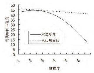 图2 湿地破碎度与鸟类丰富度关系