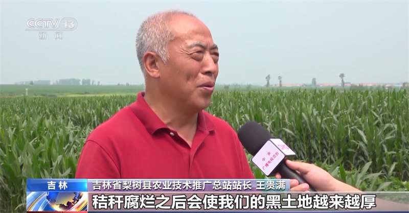 吉林省梨树县农业技术推广总站站长 王贵满:秸秆腐烂之后会使我们的黑土地越来越厚、越来越肥。秸秆全量覆盖的条件下,有机质以每年0.1%的速度在提升,蚯蚓的数量成倍增长,多的地方能达到七八十条。