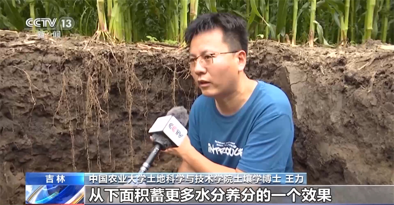 中国农业大学土地科学与技术学院土壤学博士 王力:这就是保护性耕作促进根系下扎,从下面积蓄更多水分养分的一个效果。