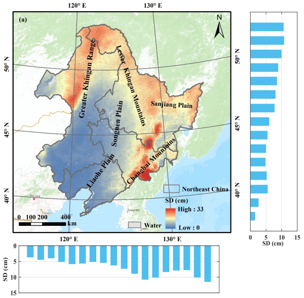 2.Wei,Y.,Li,X.,Gu,L.,Zheng,Z.,Zheng,X.,& Jiang,T. (2025). Snow depth inversion and mapping at 500 m resolution from 1980 to 2020 in Northeast China using radiative transfer model and machine learning. International Journal of Applied Earth Observation and Geoinformation,139:104533. DOI:https://doi.org/10.1016/j.jag.2025.104533.