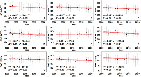 湿地生态系统正面临着气候变化的严峻影响,研究湿地植被物候的气候响应机制成为当前湿地保护与管理的重要环节之一。已有针对物候的研究,存在聚焦局部湿地,针对单一湿地类型,选取有限气候变量,采用多种来源的数据和单一的相关性分析方法等诸多不足,无法系统反映湿地植被物候动态及其对气候变化响应机制的时空异质性,进而无法为应对气候变化提供适应性的湿地保护和可持续管理建议。植被春季物候与生产力密切相关,春季物候的变化对于生态系统的稳定性具有重要的影响,对于全球气候变化更为敏感,系统解析湿地植被春季物候的气候响应机制具有重要的科学意义和实践价值。