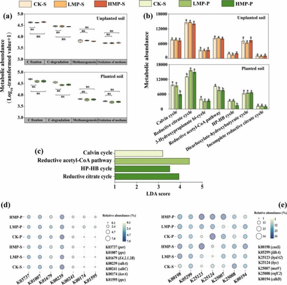 研究人员基于室内微宇宙培养实验,系统比较了有芦苇与无芦苇条件下聚丙烯微塑料(PP MPs)对湿地土壤生态系统碳氮周转过程的差异性影响。结果发现,PP MPs在不同植被条件下表现出显著差异的生态效应。在芦苇存在条件下,PP MPs对土壤细菌群落结构的扰动相对较弱,但显著影响碳固定和氮转化等关键功能途径;而在无芦苇条件下,PP MPs则对土壤养分、酶活性及微生物群落结构产生更为明显的影响,且响应模式存在显著差异。进一步分析表明,湿地植物能够通过调节根际微环境并增强微生物群落稳定性,提高土壤对微塑料扰动的缓冲能力。