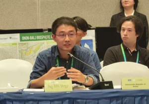 东北地理所青年代表潘应骥作主题发言,系统汇报了东北地理所与联合国教科文组织在兴凯湖保护区共同开展的青年工作成果,介绍了东北地理所在推动青年参与生物圈保护区建设、开展环境教育和促进可持续发展实践等方面的创新举措。相关工作获得了 Shahbaz Khan的肯定,他表示东北地理所在兴凯湖保护区开展的青年活动为东亚地区生物圈保护区网络注入了新活力,促进了青年参与可持续发展,感谢东北地理所对东亚生物圈网络工作的大力支持。