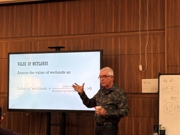 报告结束后,与会科研人员与Marinus教授展开了交流,针对湿地保护与人类福祉、湿地恢复技术方法、湿地效益估算等方面进行了深入讨论,现场学术交流氛围浓厚。