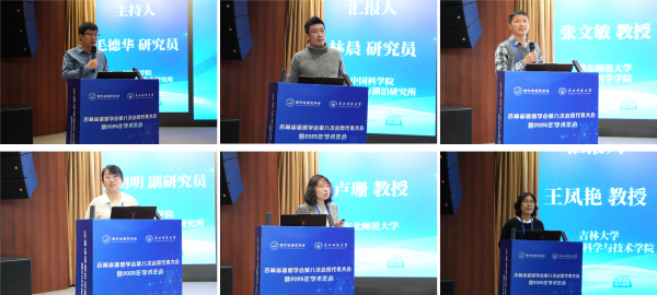本次年会特邀六位省内外知名学者做了大会主旨报告。东北师范大学卢珊教授主持上半场报告,南京大学国际地球系统科学研究所张永光教授、中国科学院南京地理与湖泊研究所林晨研究员、华东师范大学张文敏教授分别围绕全球植被遥感、小微水体遥感及森林生态系统监测等前沿方向展开分享。中国科学院东北地理所毛德华研究员主持下半场报告,中国科学院东北地理与农业生态研究所贾明明副研究员、吉林大学王凤艳教授、东北师范大学卢珊教授分享了团队在滨海湿地遥感、地质灾害智能监测、植被遥感模型等方面的研究成果。