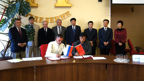 10月12日在俄罗斯符拉迪沃斯托克市我所赵恒田研究员同俄罗斯农科院瓦维洛夫农作物研究所符拉迪沃斯托克试验站站长契布金·帕维尔·阿纳多利耶维奇代表合作双方单位签署了“中俄蓝靛果种质资源合作研究协议”。