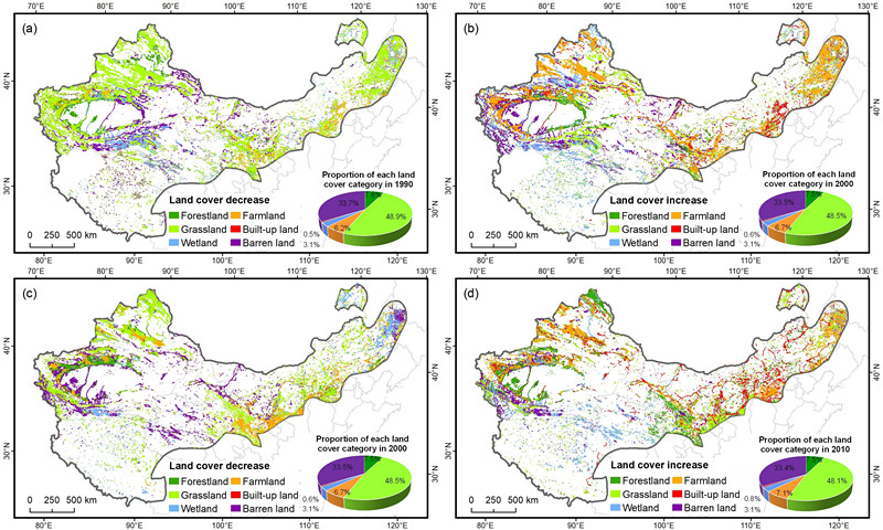 图1990-2010年中国干旱-半干旱区土地覆被变化情况