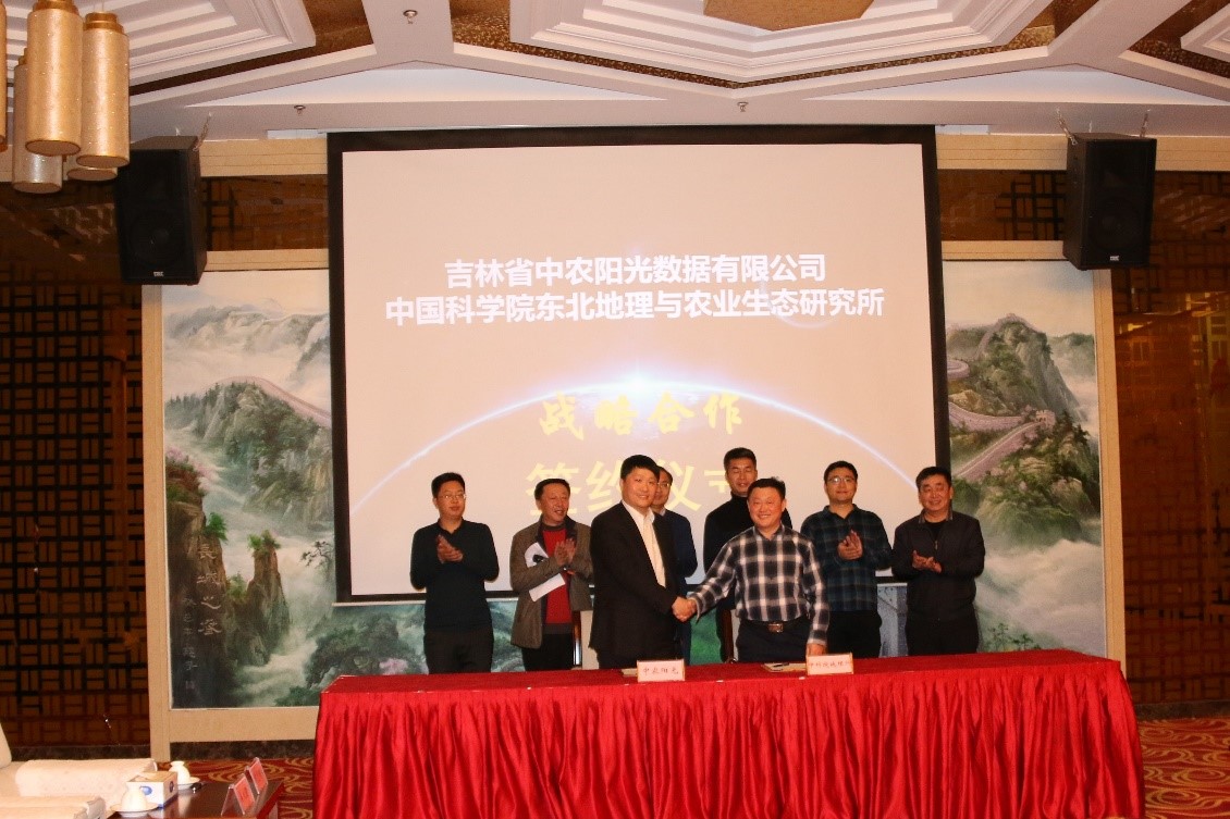 2018年12月19日, 东北地理所与吉林省中农阳光数据有限公司在长春国际会展中心签署合作协议。双方就合作建设“中农阳光大数据研究院”、联合申报和投标各类项目、共同制定行业标准、建立数据共享机制与平台、共同促进科技成果转化、共同开展人才培养达成一致意见。随后,东北地理所与中国科学院院士王会军、吉林省中农阳光数据有限公司、北京大学遥感与地理信息研究所、南京信息工程大学、吉林省气象科学研究所共同签订了《共建“中农阳光大数据应用研究院”》合作协议,签约各方将在遥感与气象大数据领域的技术研发、课题攻关、应用推广、专业人才培养多领域开展合作及成果转化。吉林省中农阳光数据有限公司是国内领先的大农业空间信息技术服务的提供商,围绕“农林牧草渔”的大农业领域,运用大数据分析技术,在农业风险管理、生态环境和农业精准生产领域的服务应用取得突出业绩。