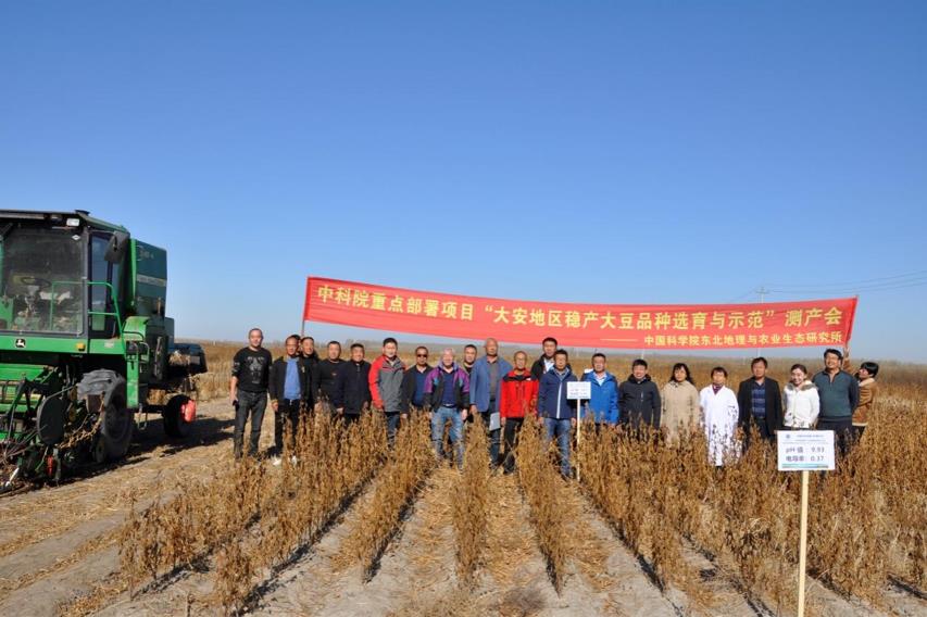 通过现场考察和测产,专家组一致认为测产田块示范的大豆新品系具有较高的抗盐碱性,配合品种专用的抗盐碱栽培措施可以实现在大安地区苏打盐碱地种植,增产效果显著;该项工作得到了中国科学院重点部署项目、中科院战略性先导专项项目的资助。