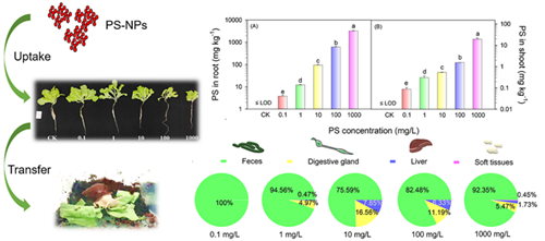 图3 基于质量浓度量化了NPs在生菜-蜗牛食物链中的营养转移