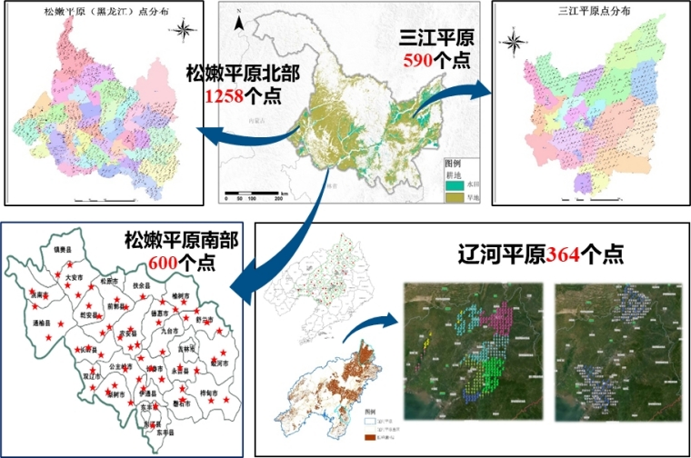 图1 三江平原、松嫩平原和辽河平原土样样品采集分布图