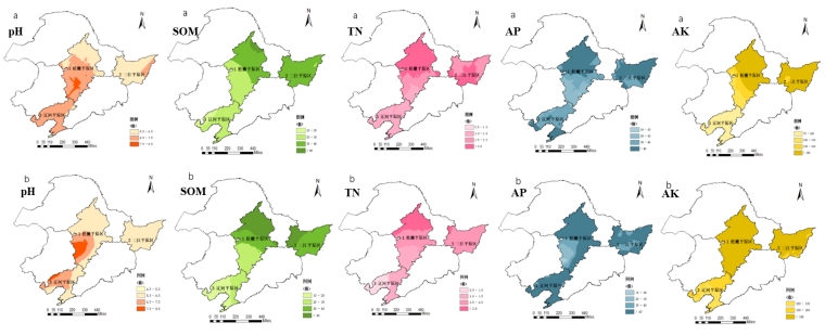 基于此数据库,本课题初步探明了三大平原土壤质量指数(SQI)的宏观时空演变特征(图2)。分析表明,2008至2022年间三大平原土壤综合肥力普遍呈明显下降趋势,三江平原尤为显著,空间格局亦由2008年的“东高西低、北高南低”转变为2022年“自北向南下降”的态势。尤为关键的是,区域土壤肥力的主控因子已由过去的有机质转变为当前的土壤pH(图3)。精细化空间分析进一步揭示了重点区域(如三江平原及松嫩平原南部)养分分布热点与关键指标的梯度规律。为实现高效评估,还建立了如松嫩平原南部的土壤质量最小数据集(MDS),筛选出全氮、微生物量碳等代表性表层指标。