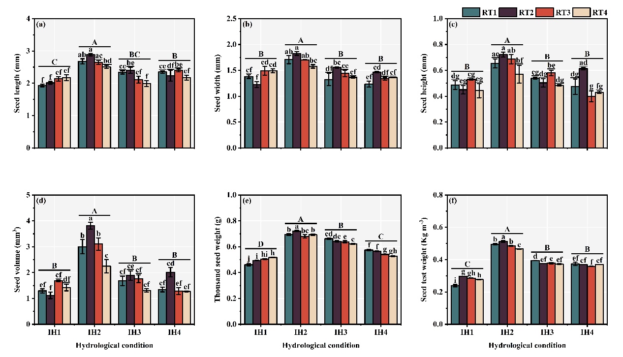 图2 不同补水措施下典型沼泽植物种子发育特征