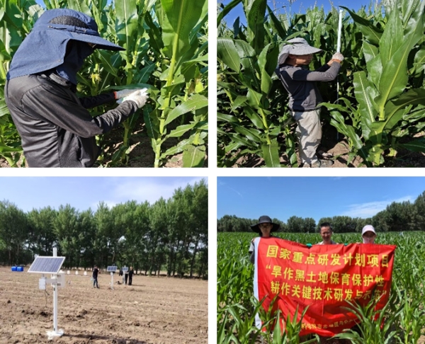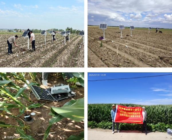 为扎实推进各课题的机理研究,验证技术应用效果。2025年6-9月,各课题团队围绕各示范区主要试验地,于玉米拔节期、大喇叭口期、抽雄吐丝期和灌浆期等关键生育时期,开展了各示范区土壤水温、土壤侵蚀特征,作物根系生长和光合特征等监测工作,综合评估各示范区技术模式的作用效果及对作物生长态势的影响,为作物田间科学管理和粮食稳产增收筑牢根基。