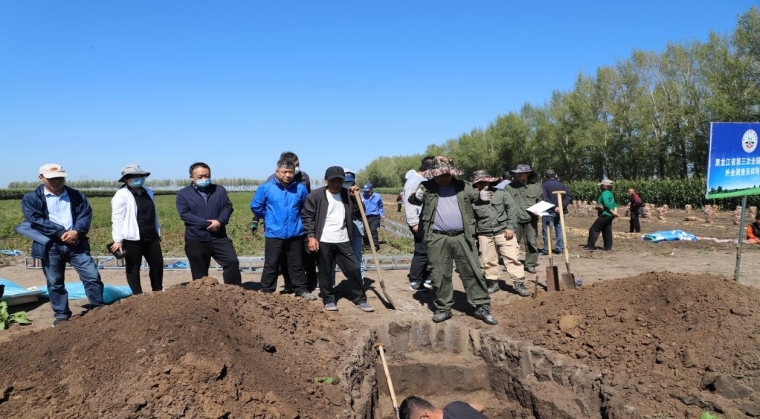 黑龙江省三普办常务副主任尹文杰做了动员讲话,重点强调了本次培训的目的和意义,要求对标三普工作任务,提高认识、压实责任、加强领导、协调联动、凝聚合力、倒排工期,加快推进外业调查采样工作。黑龙江省三普办专家指导组组长中国科学院东北地理与农业生态研究所韩晓增研究员重点解读了黑龙江省三普耕地和草地表层土壤采样细则,讲解了外业调查采样的具体要求、注意事项和操作方法。黑龙江省三普外业技术组组长中国科学院东北地理与农业生态研究所隋跃宇研究员组织外业技术组现场培训,详细讲解了调查采样前的准备工作,预设样点的外业定位,立地条件调查,表层土壤调查与采样,土壤剖面的选取、挖掘、制作、调查与采样的具体步骤和注意事项等外业调查采样全过程。